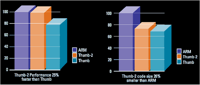 따라서, Thumb와 ARM을 혼합한 Thumb2를 사용하는데,