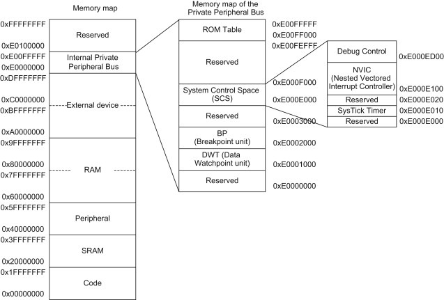 cortex-m에서 메모리 맵 전체 레이아웃은 고정