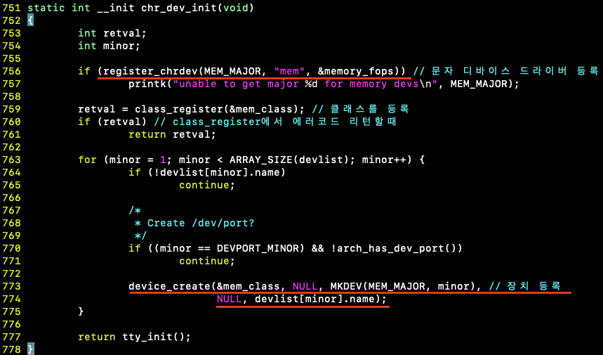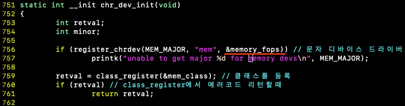 여기서 방금전의 chr_dev_init함수의 내용을 잠깐 살펴보자.