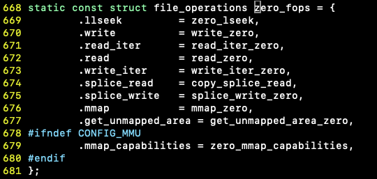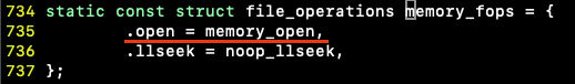 즉, 등록한 장치에 파일 접근이 발생시 일반적인 file operation대신에 우리가 따로 정의한 memory_fops가 실행된다는 의미이다.