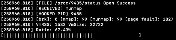 - 유저는 해당 PID를 받고, /proc/PID디렉토리로 들어가, status 파일에서 VmRSS와 VmSize를 가져온다.