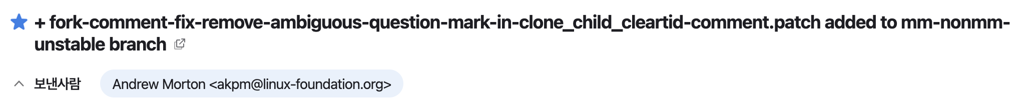 리눅스 커널 책을 읽을때, 등장했던 Andrew Morton이 직접 코드를 보고 승인을 해줬는데