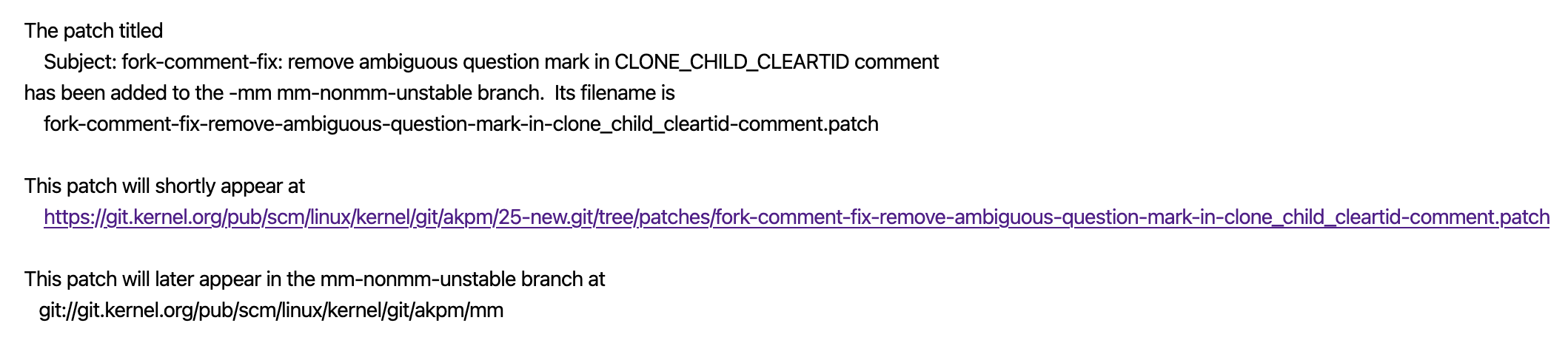 Andrew Morton이 최종적으로 Linus Torvalds에게 패치를 또 올릴텐데,