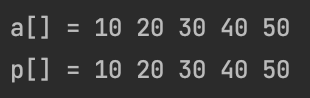 for(int i=0; i < 5; i++){ //포인터 p를 배열처럼 출력
