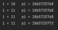 printf("증가 전 : pc = %u pi = %u pd = %u\n", pc, pi, pd);