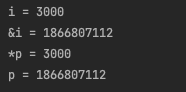 i=3000이고 *p는 i가 저장되어있는 주소로 가서 데이터인 3000을 가져온다. &i는 i의 주소이고 포인터변수인 p도 i의 주소이다. 따라서 i와 *p는 같으며, &i와 p는 같다.