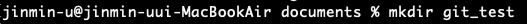 mkdir 명령어를 써서 git_test라는 폴더를 만들었다.