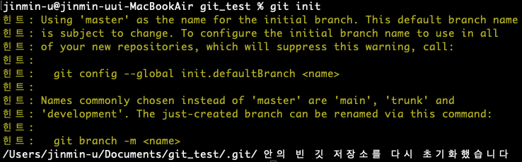 지금 git_test폴더에 위치해 있다는 것을 알 수 있다.