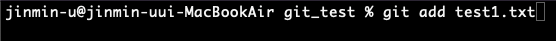 git add test1.txt를 입력하고 엔터를 누른다. 그러면 test1.txt를 commit준비완료이다.