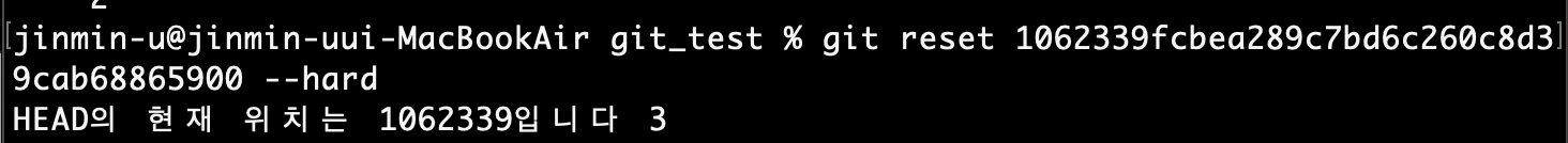 그러면 3번 커밋의 아이디를 복사한 후, git reset <3번커밋 아이디> --hard를 입력해주면 된다.