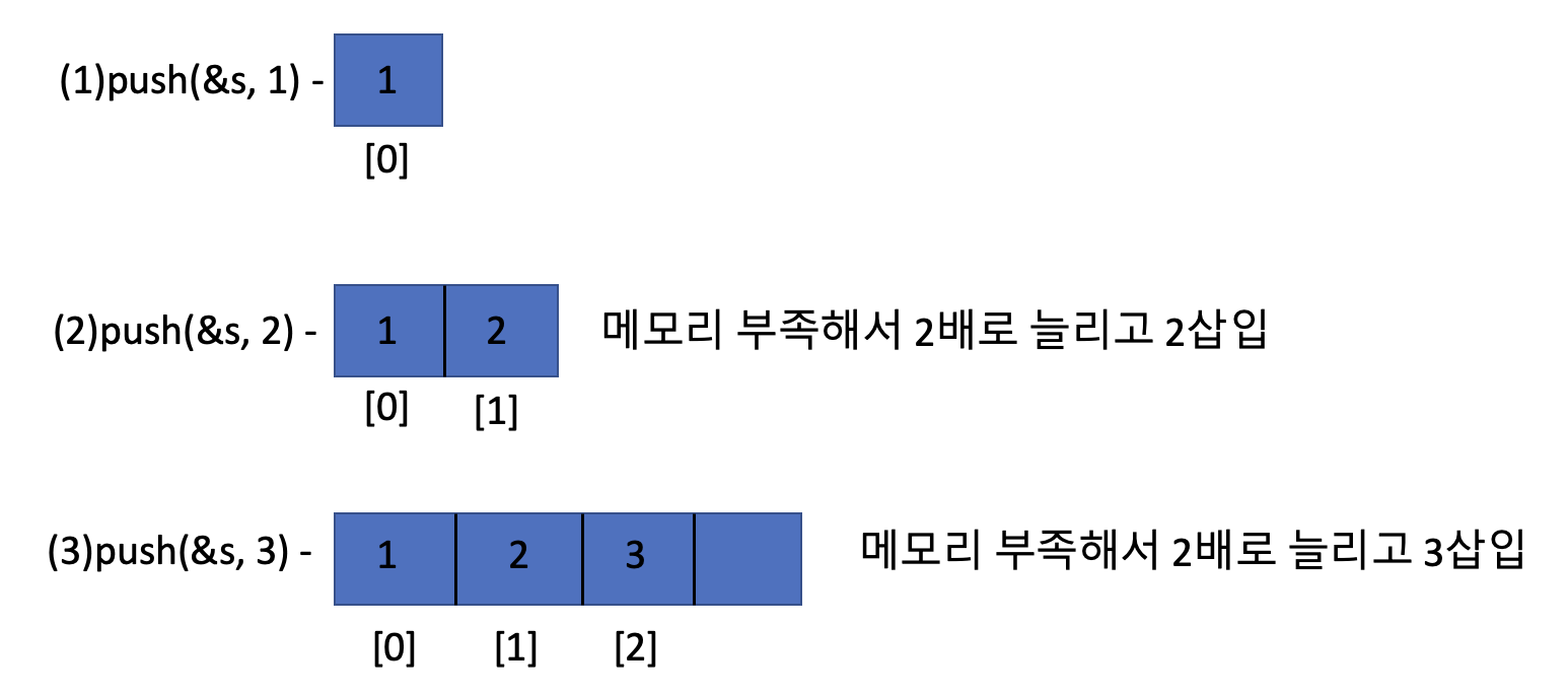 만약, 데이터를 넣을때 스택이 꽉 찼다면 capacity를 2배 해주고,