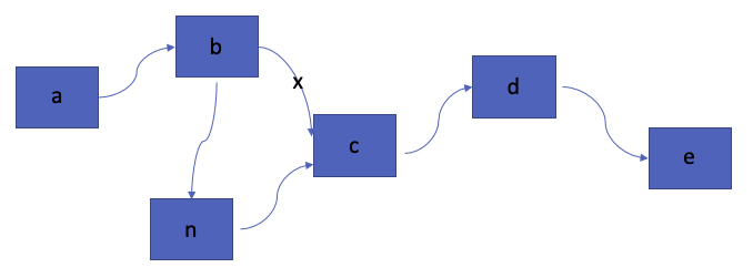 그림과 같이 b가 n을 가리키도록, 그리고 n이 c를 가리키도록 줄을 수정해주면 된다.