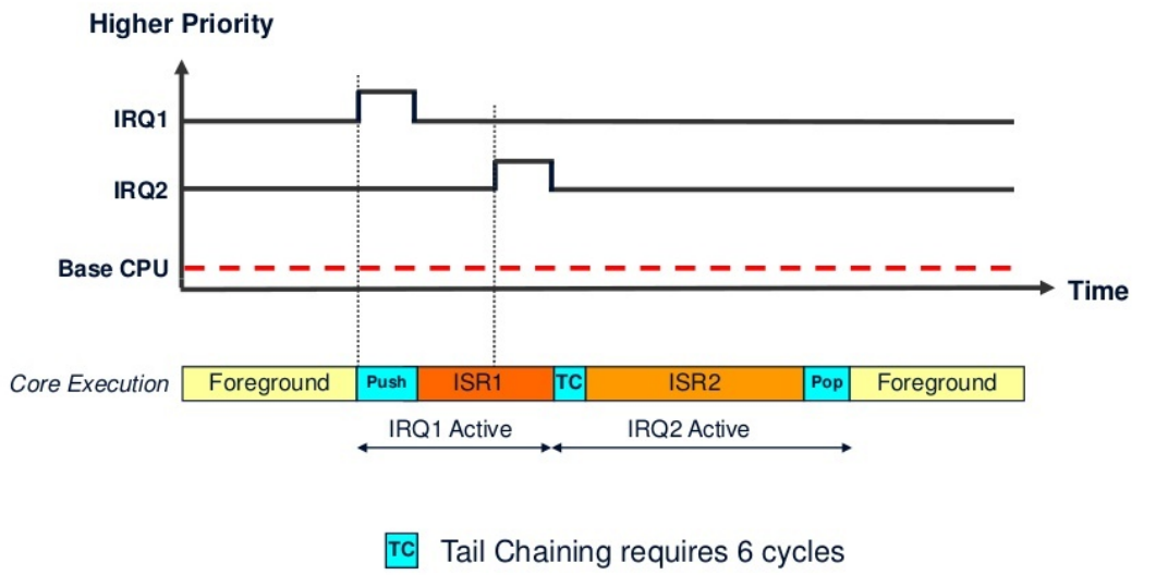 ARM Cortex-M 프로세서에서 익셉션 간의 전환 시간을 줄이는 최적화 기능